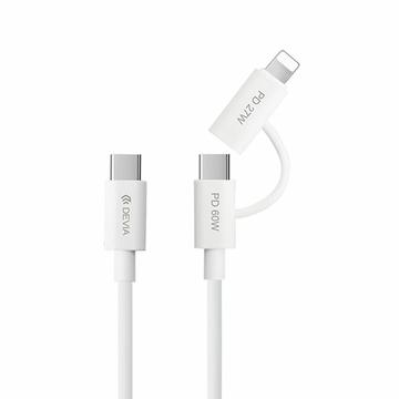 Devia EC404 Inteligentny kabel 2 w 1 do szybkiego ładowania i przesyłania danych - USB-C do USB-C PD 60 W i Lightning 27 W - 1.2m, 480 Mb/s