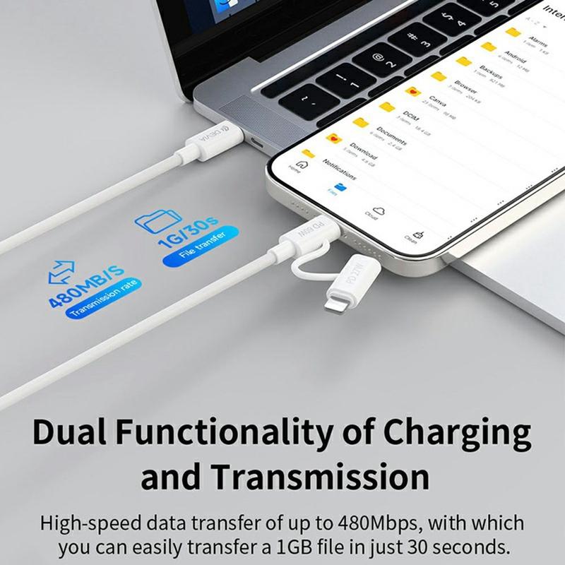 Poznaj rozwiązanie z jednym kablem dla nowoczesnych urządzeń: kabel Devia EC404 Smart Series 2 w 1 łączy w sobie funkcję zasilania USB-C do USB-C (do 60 W) oraz opcję ładowania Lightning/IP (do 27 W) w jednym, poręcznym przewodzie. Niezależnie od tego, czy ładujesz laptopa przy biurku, telefon na kanapie, czy pakujesz się na podróż, ten kabel zapewnia prostotę konfiguracji — bez utraty szybkości, stabilności i trwałości. Ulepszona powłoka TPE jest elastyczna, odporna na splątanie i przystosowana do codziennego zginania, a gruby rdzeń z cynowanej miedzi 20AWG pomaga zmniejszyć straty energii, zapewniając wydajne, chłodniejsze i szybsze ładowanie.