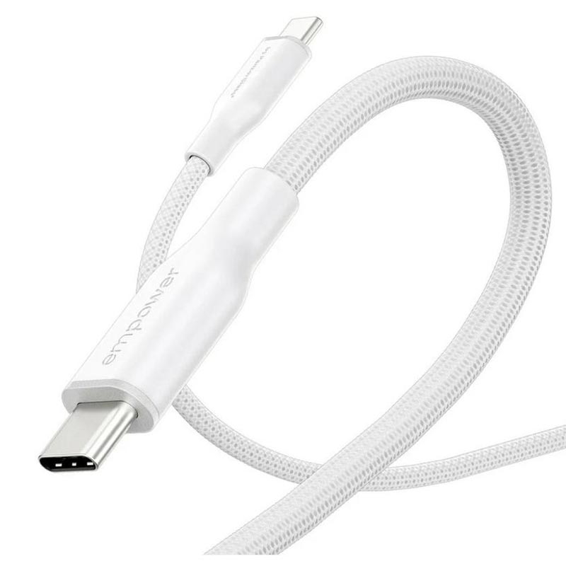 Kabel empower by PanzerGlass Racing USB-C do USB-C łączy w sobie szybkość, wygodę i trwałość. Jego niezwykle miękka powierzchnia sprawia, że korzystanie z niego na co dzień jest przyjemnością, a wzmocniona pleciona konstrukcja zapewnia odporność na intensywne użytkowanie. Dzięki szybkiemu ładowaniu 60W i zrównoważonym materiałom jest to niezawodny wybór, z którego można korzystać bez obaw.