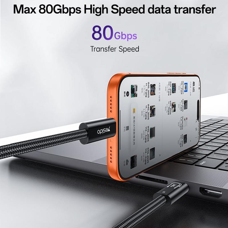 Dzięki obsłudze prędkości transmisji do 80 Gb/s kabel Yesido CA211 nadaje się do szybkiego przesyłania plików, tworzenia kopii zapasowych danych oraz wydajnej synchronizacji dużych plików. Obsługuje również ładowanie o mocy do 240W, co pozwala na szybkie ładowanie kompatybilnych urządzeń przy użyciu odpowiedniej ładowarki i obsługiwanych komponentów. W przypadku wyświetlaczy kabel obsługuje transmisję wideo do 16K@60Hz, co czyni go doskonałym wyborem do zaawansowanych konfiguracji wizualnych i zewnętrznych wyświetlaczy o wysokiej rozdzielczości.