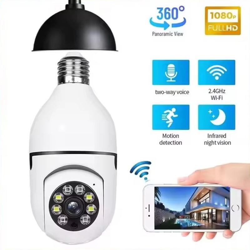 Kamera monitoringu WiFi 1080p z gniazdem na żarówkę E27 - kamera PTZ z panoramicznym widokiem 360°, funkcją noktowizji i dwukierunkową komunikacją audio