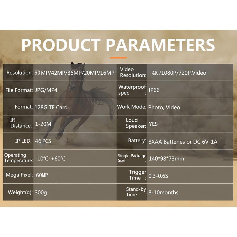 PR300 WiFi Wildlife Trail Camera - 60 MP 4K Night Vision Infrared IP66 Wodoodporna kamera do śledzenia zwierząt