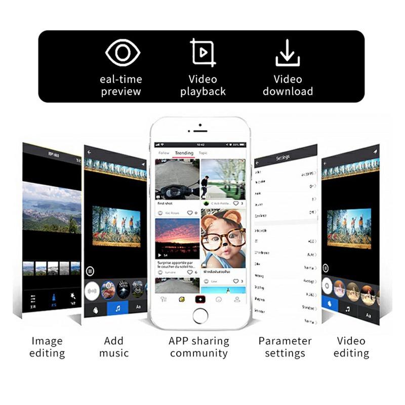 - WiFi: 2,4 GHz (802.11b/g/n) do podglądu w czasie rzeczywistym i odtwarzania na iOS/Android