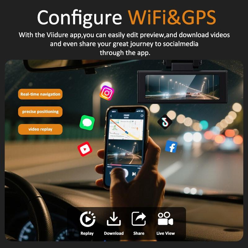 Wbudowany moduł Wi-Fi umożliwia podłączenie kamery bezpośrednio do smartfona w celu natychmiastowego odtwarzania, pobierania lub udostępniania plików wideo - bez konieczności wyjmowania karty pamięci. Zintegrowany moduł GPS śledzi trasy jazdy i lokalizacje, zapewniając precyzyjne dane mapowe do dokumentacji podróży lub weryfikacji wypadków. System wspomagania kierowcy ADAS zapewnia dodatkową warstwę bezpieczeństwa dzięki inteligentnym alertom, które pomagają promować ostrożniejszą jazdę.