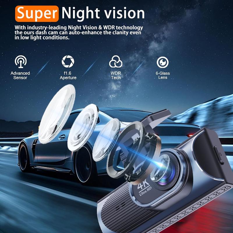 Kamera samochodowa 4K z podwójnym obiektywem - szerokokątny rejestrator samochodowy 170 z WiFi, śledzeniem GPS i noktowizorem