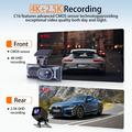 Dwuobiektywowa kamera samochodowa 4K zapewnia pełne pokrycie przedniej i tylnej części pojazdu z wyjątkową wyrazistością, oferując niezawodną ochronę zarówno podczas jazdy, jak i parkowania. Przednia kamera nagrywa w prawdziwej rozdzielczości 4K, podczas gdy tylna rejestruje szczegółowe wideo 2,5K, zapewniając zachowanie każdego istotnego szczegółu. Bardzo szeroki przedni kąt widzenia 170° dodatkowo redukuje martwe punkty, zapewniając bezpieczniejszą i pewniejszą jazdę.