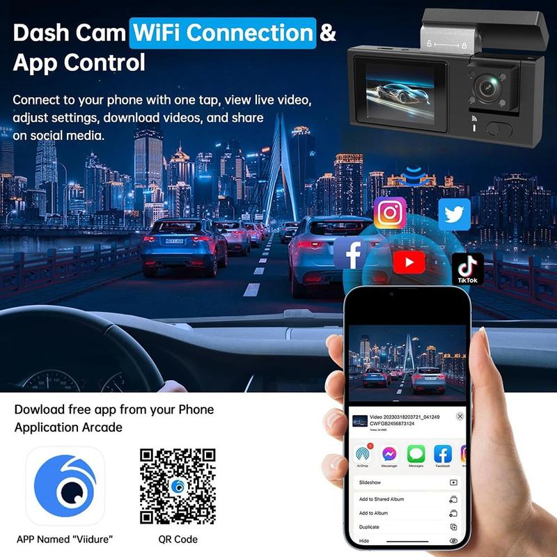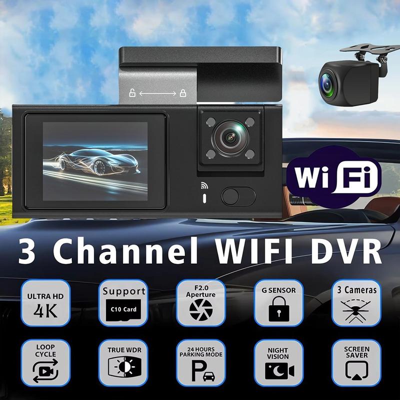 Kamera samochodowa Y08 4K z trzema obiektywami - przedni, wewnętrzny i tylny rejestrator samochodowy z WiFi, 2-calowym ekranem IPS i czujnikiem G-Sensor