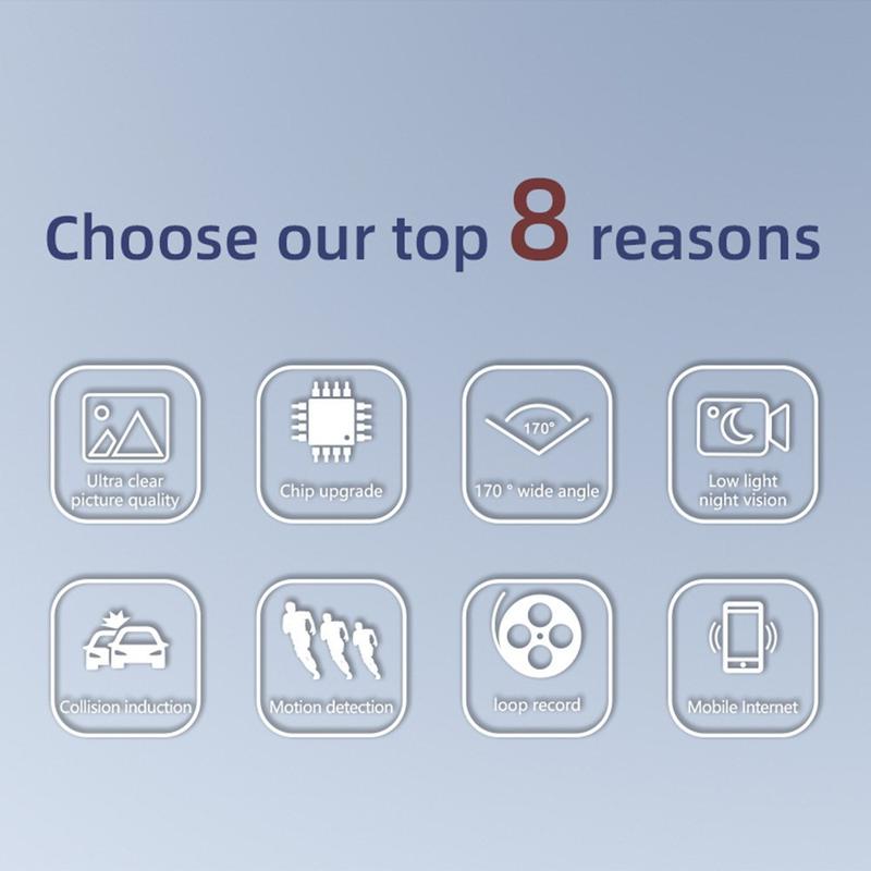 Trójobiektywowa kamera samochodowa Y08 zapewnia pełny monitoring pojazdu dzięki trzem kamerom o wysokiej rozdzielczości, które jednocześnie rejestrują drogę, wnętrze kabiny i widok z tyłu. Przednia kamera nagrywa w wyraźnej rozdzielczości 4K, podczas gdy wewnętrzne i tylne obiektywy 720P zapewniają szerokie pokrycie dla codziennej jazdy, wspólnych przejazdów, pojazdów rodzinnych i bezpieczeństwa zaparkowanych samochodów.
