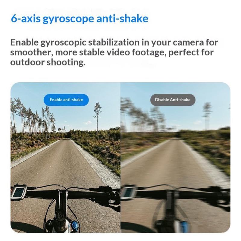 Zaawansowana 6-osiowa stabilizacja żyroskopowa zapewnia płynność i stabilność filmów nawet podczas uprawiania sportów ekstremalnych, jazdy na rowerze lub poruszania się po trudnym terenie, dzięki czemu Twoje ujęcia wyglądają profesjonalnie bez dodatkowego sprzętu.