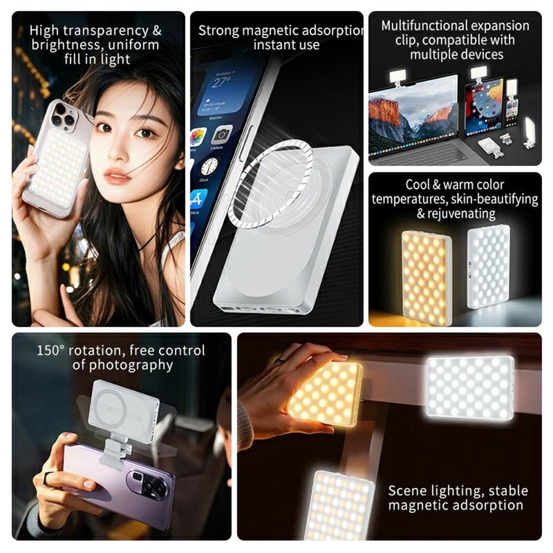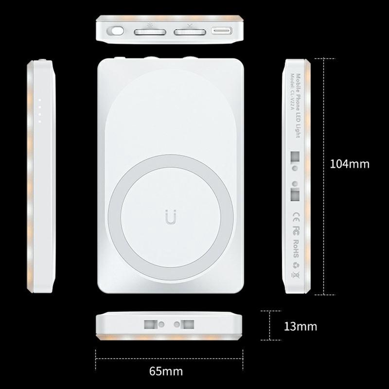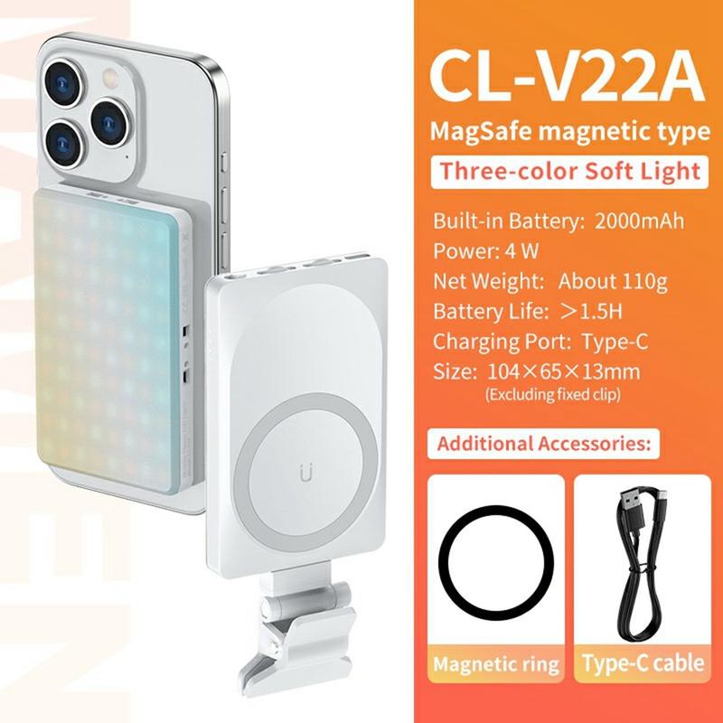 V22A 4W Przenośne magnetyczne światło wypełniające LED - Kieszonkowa ładowalna lampa typu C do telefonu i transmisji na żywo