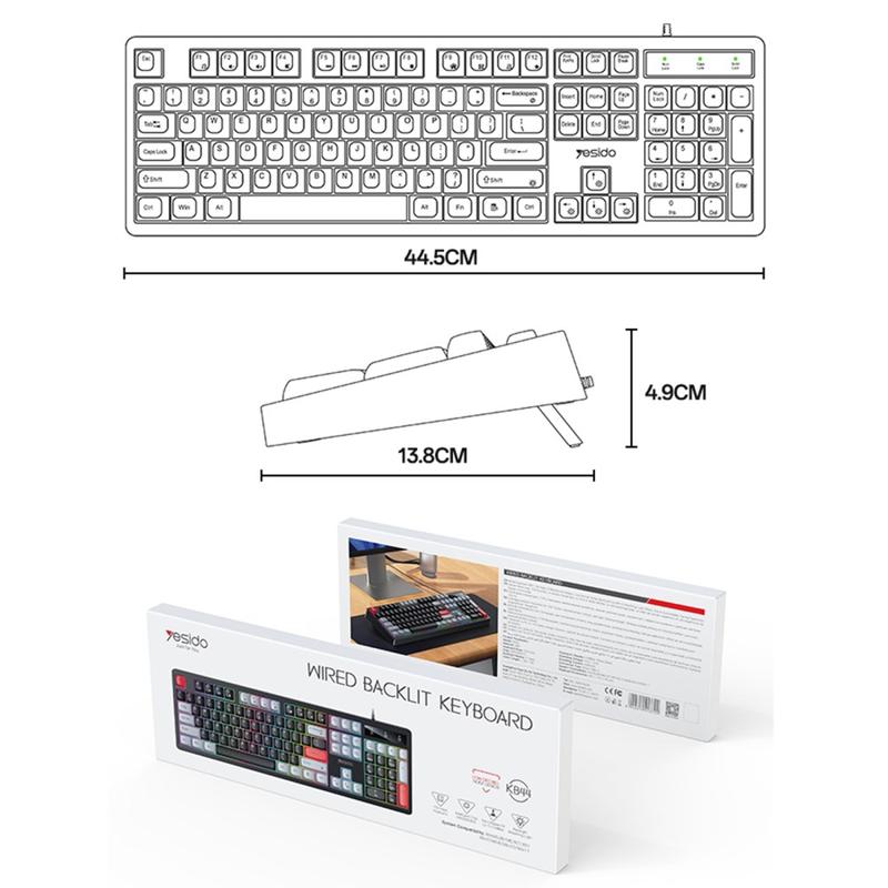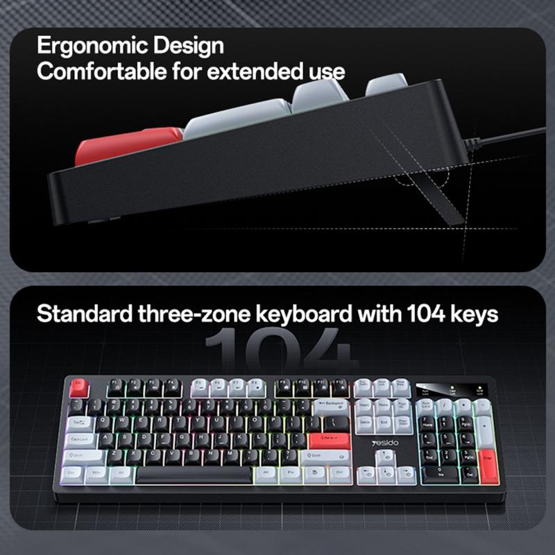 Popraw swoje wrażenia z pisania dzięki przewodowej klawiaturze mechanicznej YESIDO KB44, stylowej i wytrzymałej pełnowymiarowej klawiaturze, która łączy cichą pracę z żywym podświetleniem RGB. Zaprojektowana z myślą o komforcie, trwałości i kompatybilności, jest idealna zarówno do pracy, nauki, jak i gier.