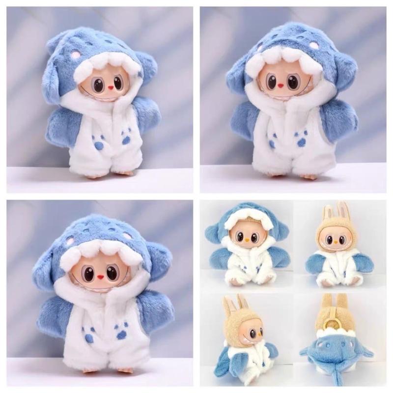 Kombinezon z kapturem rekina dla lalki Labubu 17 cm - urocza pluszowa piżama dla mini figurki