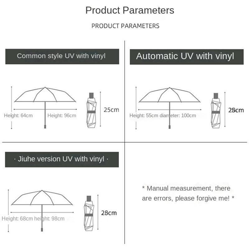 Kompaktowy składany parasol anty-UV - przenośny parasol przeciwsłoneczny i przeciwdeszczowy z 8 żebrami, składana konstrukcja, torba do przechowywania