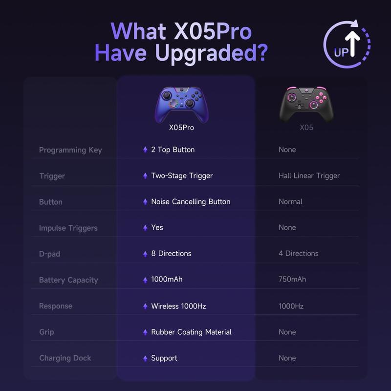 Joysticki z efektem Halla wykorzystują czujniki magnetyczne zamiast fizycznego kontaktu, eliminując zużycie i dryfowanie - funkcja często zarezerwowana dla wysokiej klasy profesjonalnych kontrolerów, teraz dostępna w X05Pro dla długotrwałej precyzji i trwałości.