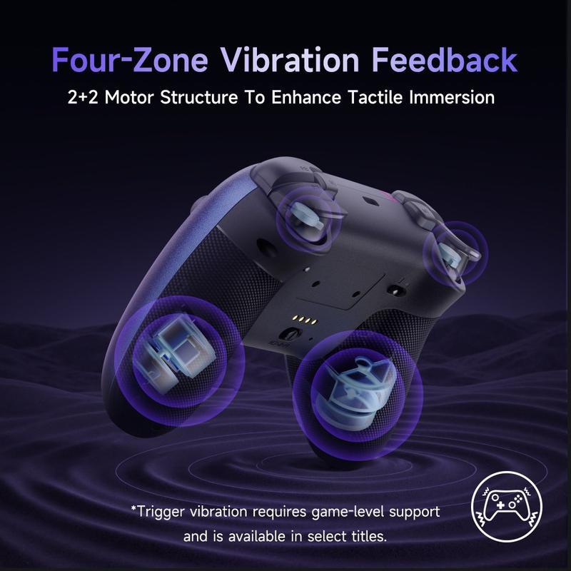 - Joysticki z efektem Halla - zaawansowane czujniki magnetyczne zapewniają dokładność bez dryftu i płynną kontrolę, nawet po długim okresie użytkowania.