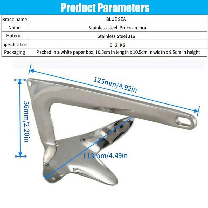 Kotwica Bruce ze stali nierdzewnej 316 o wadze 0,2 kg z liną o długości 5m - kompaktowa kotwica do kajaków, pontonów i małych jednostek pływających (w zestawie hak sprężynowy)