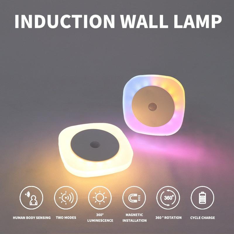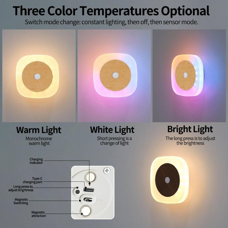 Kwadratowa lampka nocna LED z czujnikiem ruchu - magnetyczna, ładowalna lampka ścienna z 3 temperaturami barwowymi i obrotowym oświetleniem nastrojowym o zakresie 360°