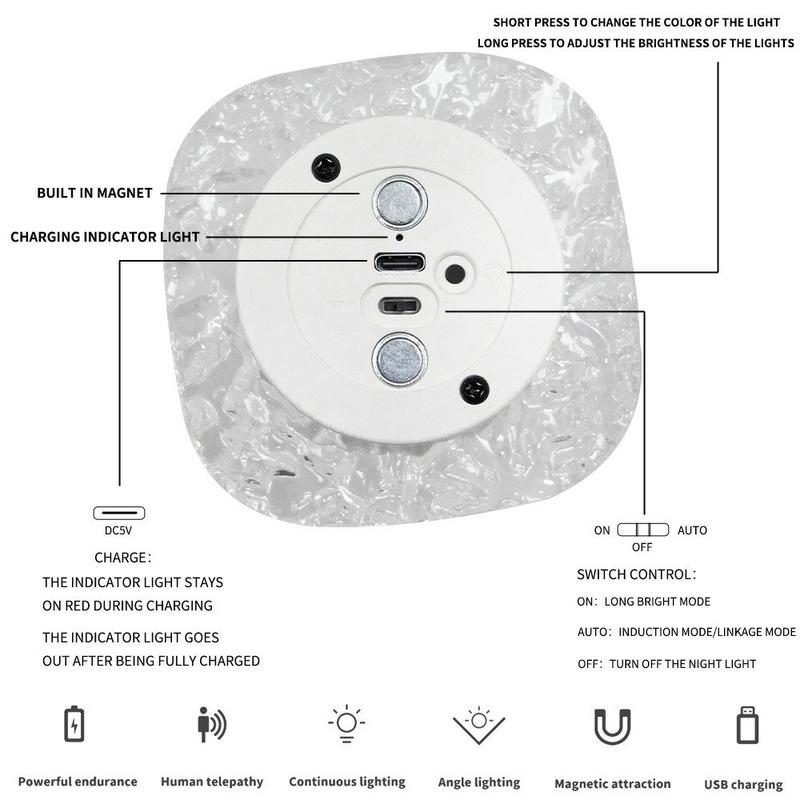 Wzbogać swoje mieszkanie o wygodne, automatyczne oświetlenie dzięki tej kwadratowej lampce nocnej LED z czujnikiem ruchu. Przeznaczona do przedpokojów, sypialni, klatek schodowych i szaf, włącza się automatycznie po wykryciu ruchu w warunkach słabego oświetlenia, umożliwiając bezpieczne poruszanie się w nocy bez konieczności włączania jasnego światła sufitowego. Kompaktowa konstrukcja i magnetyczna podstawa sprawiają, że montaż jest prosty i całkowicie bezprzewodowy, co pozwala umieścić lampkę wszędzie tam, gdzie potrzebujesz dodatkowego oświetlenia.
