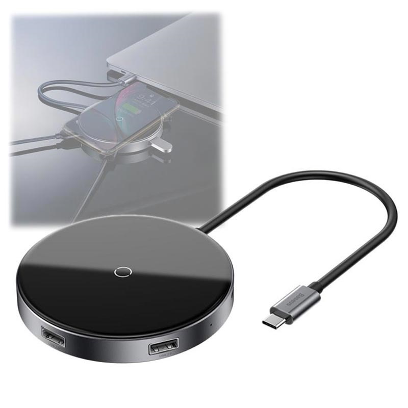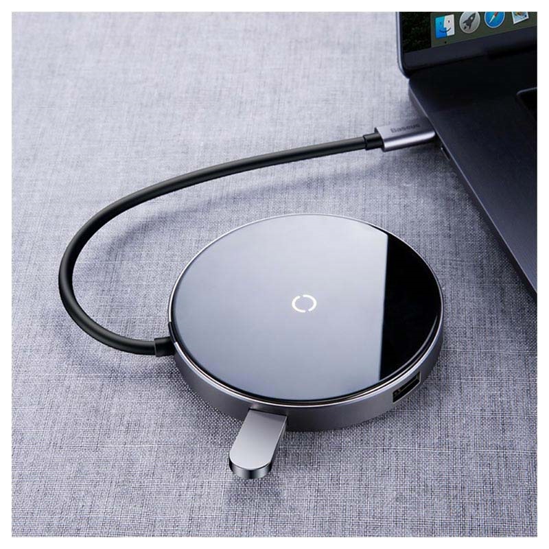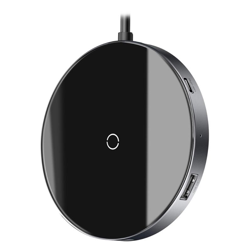 Ładowarka Bezprzewodowa Qi i Hub z Portami Type-C PD, 4 USB 6-w-1 Baseus Circular Mirror - 10W, 60W, 5Gbps, 480Mbps