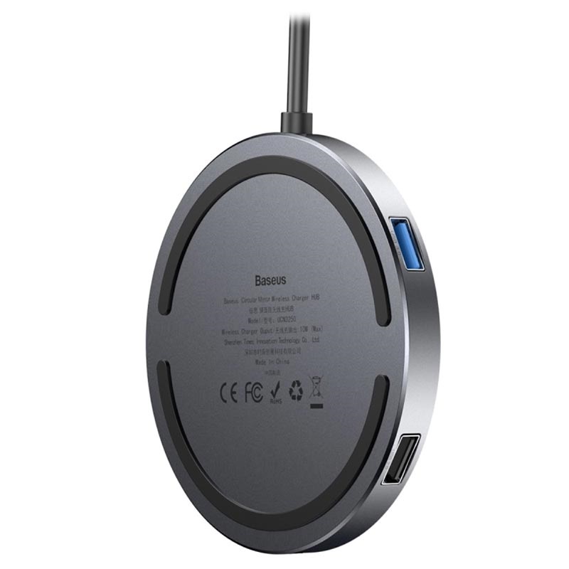 Wyposaż MacBooka, MateBooka lub każdy inny laptop ze złączem USB-C w cztery porty USB! Bezprzewodowa ładowarka/hub Baseus Circular Mirror jest zaprojektowana z jednym portem USB 3.0 i trzema portami USB 2.0, pozwalającymi przesyłać pliki i podłączać zewnętrzne urządzenia USB, takie jak klawiatura, myszka, pendrive itp. Port USB 3.0 umożliwia przesyłanie plików z szybkością do 5Gbps, a porty USB 2.0 z szybkością do 480Mbps.