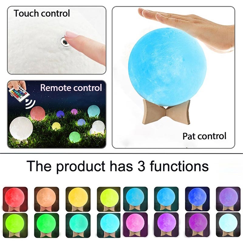 Lampa/Nocna Lampka - Księżyc RGB LED YK2302 - 15cm, 1000mAh, 16 kolorów, regulowana jasność