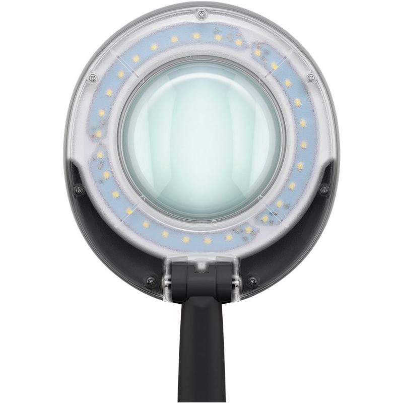 Lampa powiększająca Goobay LED z podstawą łączy wyraźne powiększenie z jasnym, redukującym cienie oświetleniem do precyzyjnych zadań w domu lub w pracy. Szklana soczewka o średnicy 100 mm i 3 dioptriach (1,75-krotne powiększenie) pomaga lepiej dostrzec drobne szczegóły, a oświetlenie pierścieniowe LED o zrównoważonym świetle dziennym zapewnia 450 lm chłodnego, białego światła (6500 K), zapewniając czysty i skupiony obszar roboczy. Przegubowe ramię zapewnia promień roboczy 330 mm, a głowica obiektywu przechyla się do 90°, ułatwiając ustawienie urządzenia do prac rzemieślniczych, czytania, prac kosmetycznych, napraw, haftowania, lutowania i rysowania. Antypoślizgowa podstawa zapewnia stabilne podparcie na biurkach i stołach roboczych.