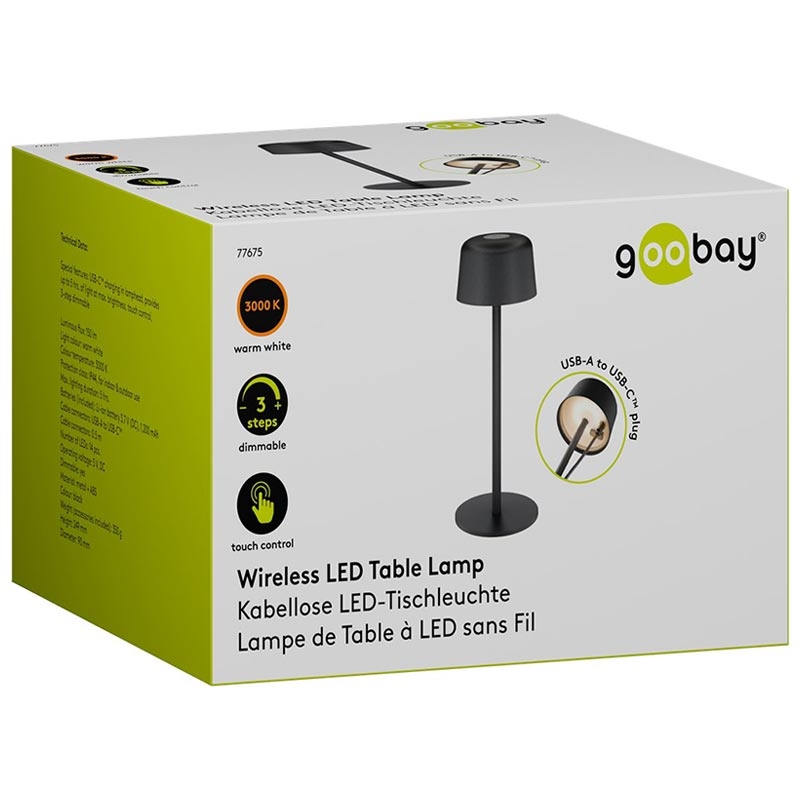 Lampa stołowa LED Goobay Wireless - rozmiar S (25 cm), sterowanie dotykowe, ciepła biel 3000 K, 150 lm, ładowana przez USB-C, IP44