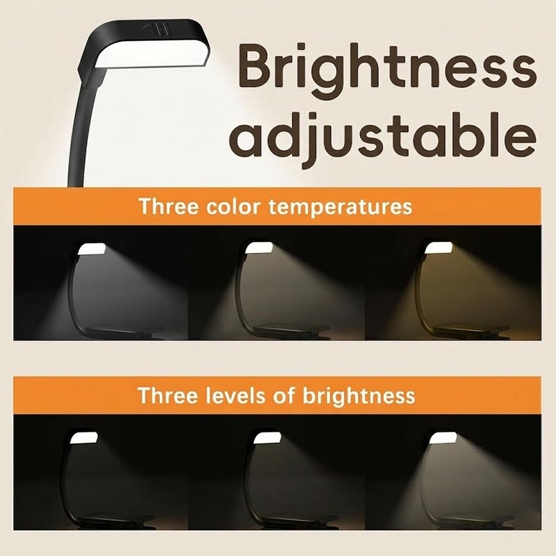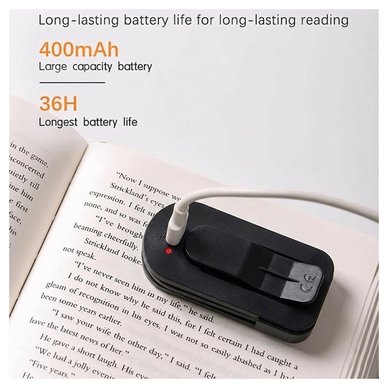 Lampka LED do czytania F26 z klipsem - mini lampka do książek z 3 temperaturami barwowymi, 3 poziomami jasności i ładowaniem przez USB-C