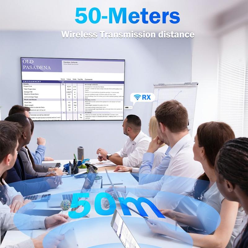 System obsługuje transmisję wideo do 1080P, zapewniając ostry obraz i niezawodną wydajność ekranów, projektorów i monitorów. Jest idealny do profesjonalnych prezentacji, odtwarzania wideo i tworzenia kopii lustrzanych ekranu.