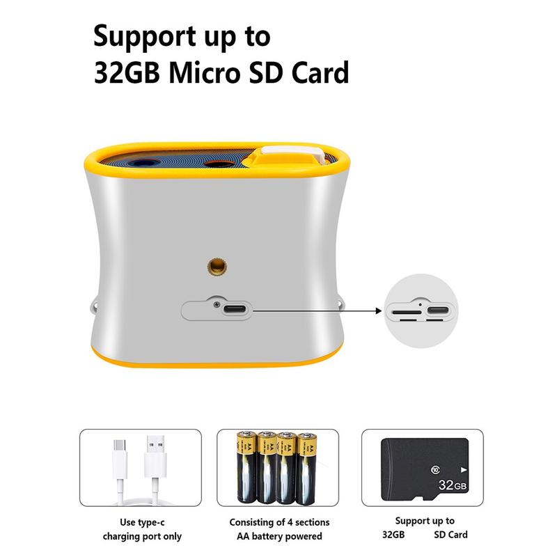 Kamera DT15 jest zasilana za pomocą 4 × baterii AA lub ładowania typu C, dzięki czemu jest wygodna w podróży i na zewnątrz. Dzięki lekkiej konstrukcji i dołączonej smyczy, dzieci mogą nosić go bezpiecznie i wygodnie. Pamięć można rozszerzyć za pomocą karty microSD o pojemności 32 GB (brak w zestawie).