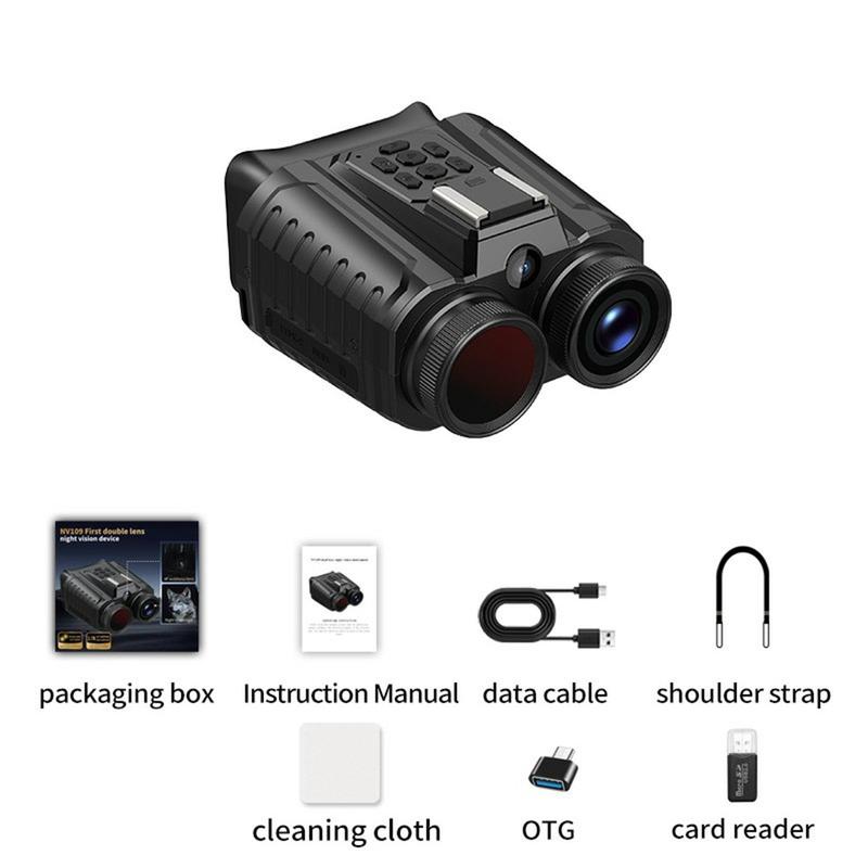 Lornetka noktowizyjna NV109 z podwójnym obiektywem, nagrywaniem wideo 2,7K, zdjęciami 64 MP i kartą 32 GB - zewnętrzna kamera myśliwska z 2,0-calowym ekranem IPS