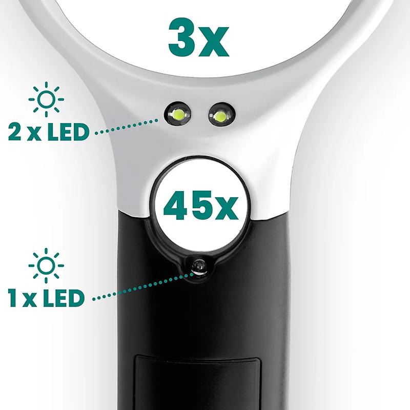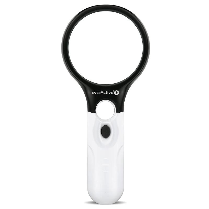 EverActive MG-01 Szkło powiększające z podświetleniem LED - duża soczewka 3x i mini soczewka 45x, zasilanie bateryjne 3x AAA