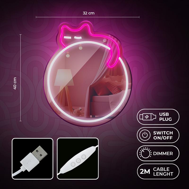 Wzbogać swoje wnętrze dzięki Neon MIRROR LED, doskonałemu połączeniu oświetlenia otoczenia i praktycznego lustra otoczonego stylową neonową ramą. Oświetlenie LED tworzy przytulną i relaksującą atmosferę, dzięki czemu idealnie nadaje się zarówno do dekoracji domu, jak i do codziennego użytku. Jego wszechstronne zastosowanie sprawia, że jest to wyróżniający się element zarówno w salonach usługowych, jak i w pomieszczeniach mieszkalnych.
