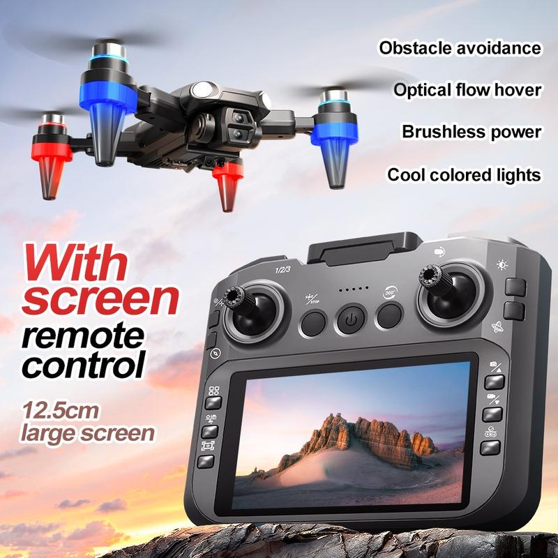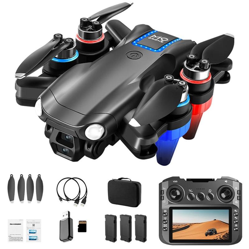 M9 Drone FPV z silnikiem bezszczotkowym - składany quadcopter z dwiema kamerami HD, przepływem optycznym, funkcją omijania przeszkód, kontrolerem ekranowym i 3 bateriami