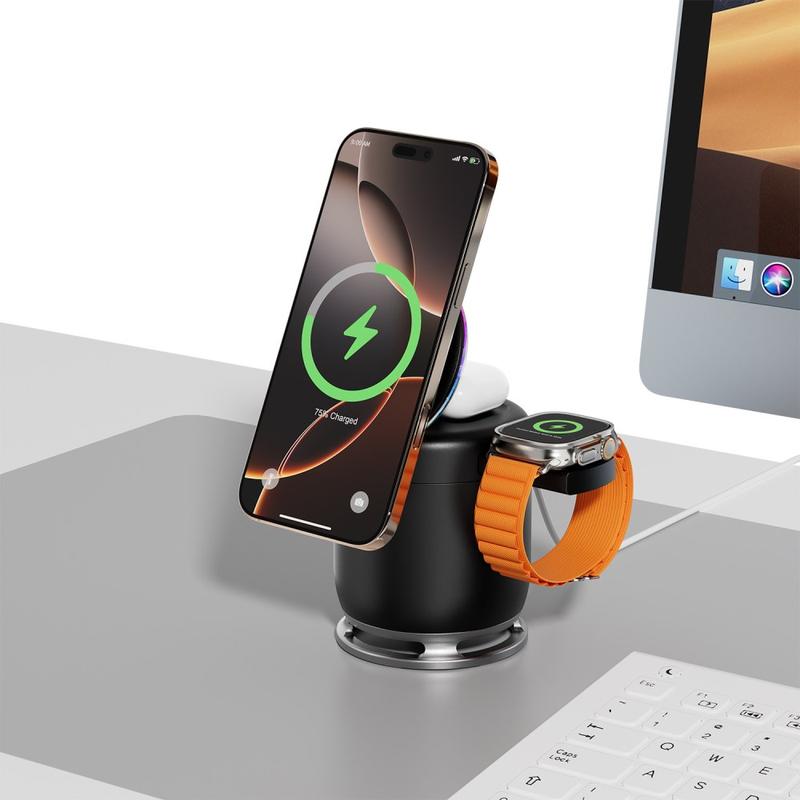 - Ładowanie 3 w 1: telefon 15W + zegarek 2,5 W + słuchawki douszne 5 W jednocześnie