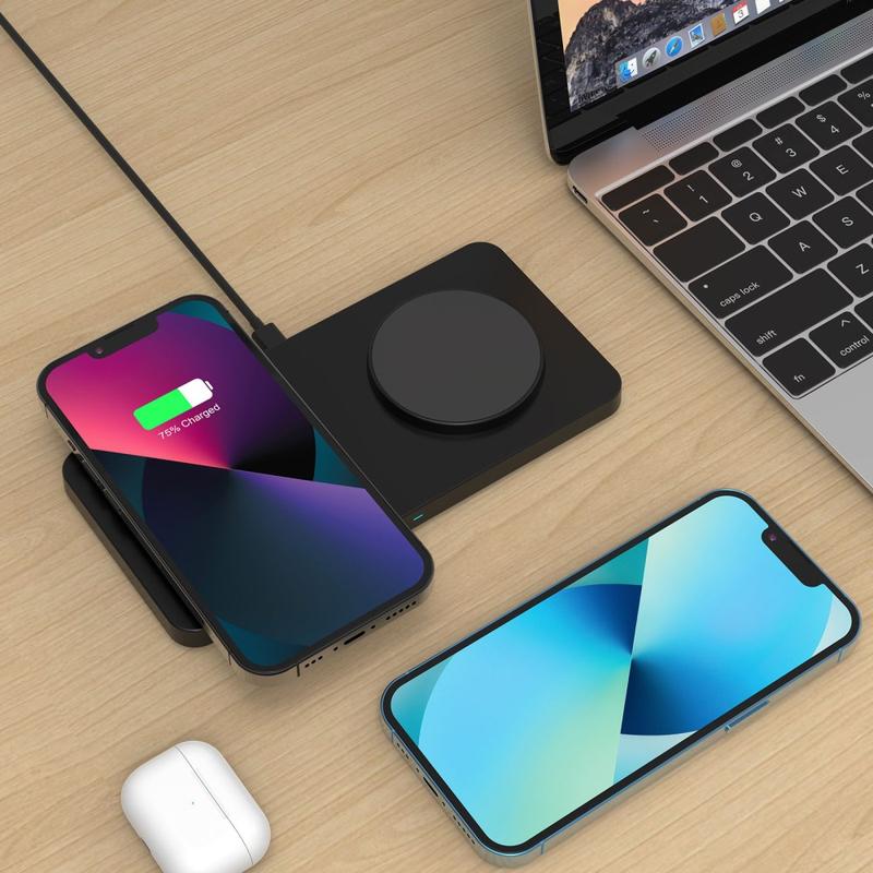 M15 jest idealny, jeśli potrzebujesz schludnej stacji ładującej, która obsługuje jednocześnie telefon i słuchawki. Magnetyczne wyrównanie pomaga zmniejszyć ryzyko zgubienia, silikonowa podstawa zapewnia stabilność, a szeroka kompatybilność z Qi ułatwia korzystanie z różnych urządzeń. Połącz go z adapterem 30W+, a uzyskasz czyste i niezawodne rozwiązanie do codziennego ładowania.