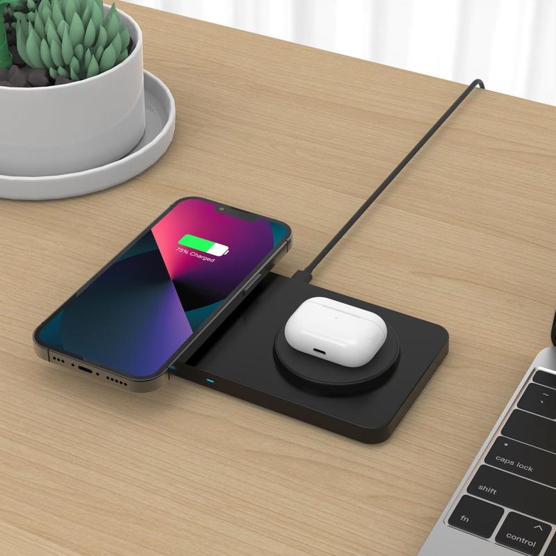 - Minimalistyczne przestrzenie: zastąp oddzielne ładowarki do telefonu i słuchawek jedną stacją