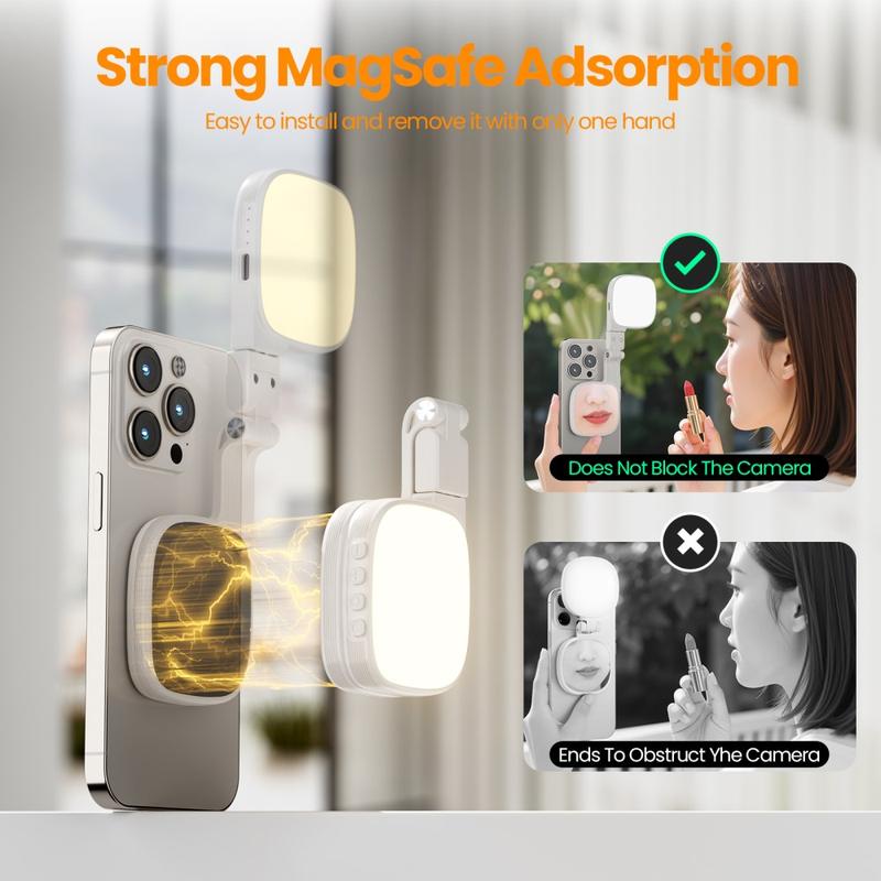 Ulepsz swoje zdjęcia, rozmowy wideo i transmisje na żywo dzięki magnetycznemu oświetleniu LED XJ105 — ultraprzenośnemu narzędziu oświetleniowemu zaprojektowanemu dla twórców, osób dojeżdżających do pracy i wszystkich, którzy chcą mieć dostęp do korzystnego oświetlenia na żądanie. Mocne mocowanie magnetyczne pozwala na zamocowanie go jedną ręką bez zasłaniania aparatów telefonu, a jeśli telefon nie jest magnetyczny, dołączony pierścień magnetyczny rozwiązuje ten problem w kilka sekund. Dzięki 48 diodom LED (ciepłym + zimnym), 3 trybom temperatury barwowej i 10 poziomom jasności możesz szybko uzyskać odpowiedni wygląd — miękki i ciepły do wieczornych treści, neutralny do spotkań lub chłodny i ostry do szczegółowych ujęć. Dodaj do tego składaną konstrukcję i możliwość obrotu pod różnymi kątami, a XJ105 stanie się kompaktowym oświetleniem studyjnym, które zmieści się w kieszeni.