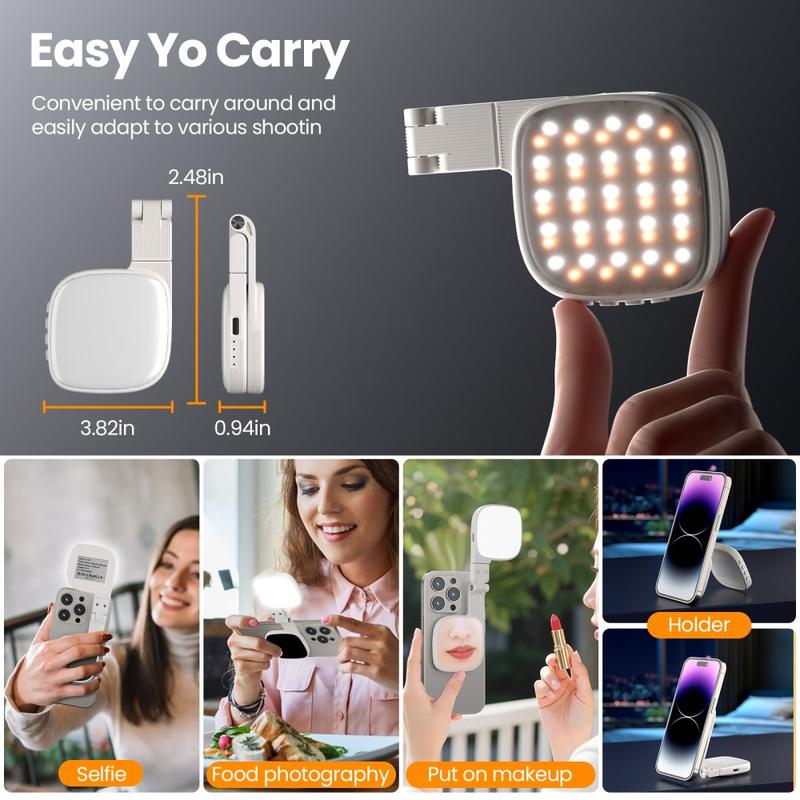 Magnetyczna lampka LED do selfie XJ105 ze składanym uchwytem na telefon - 48 diod LED, 3000K-6500K, 10 poziomów jasności, 1000 mAh, USB-C