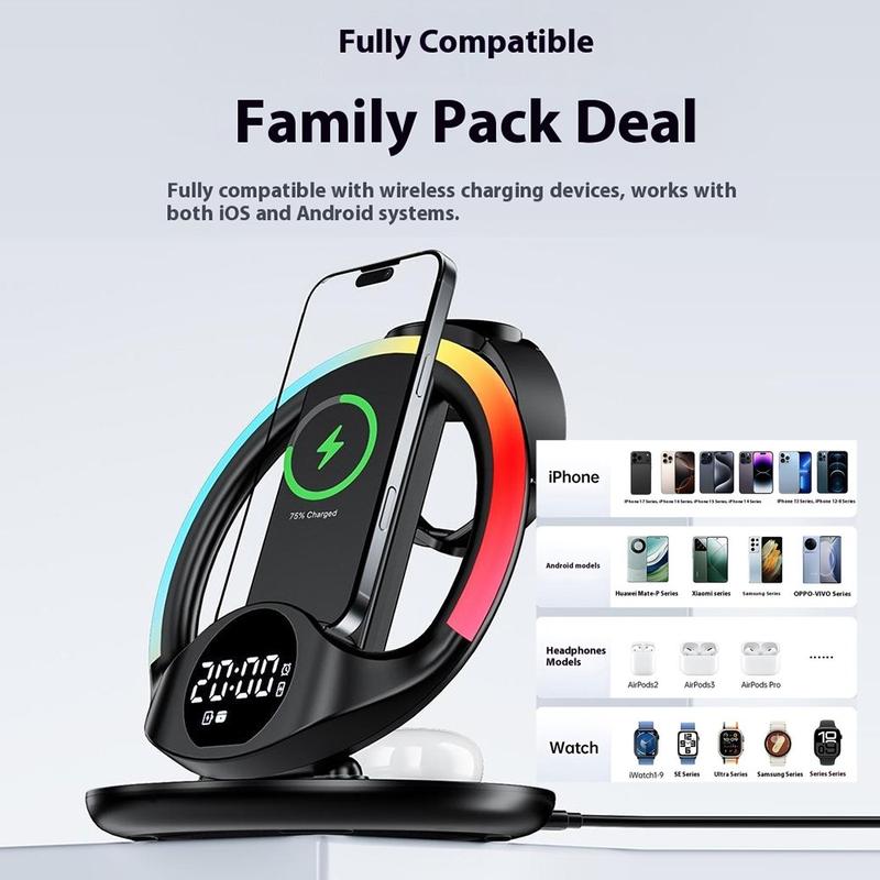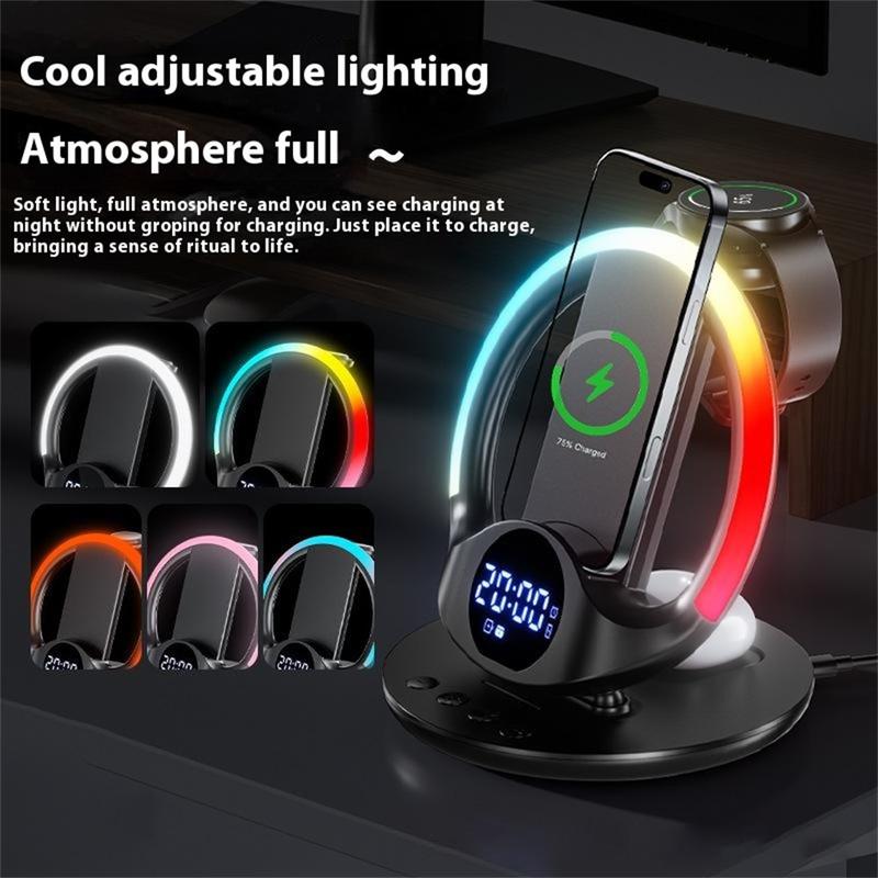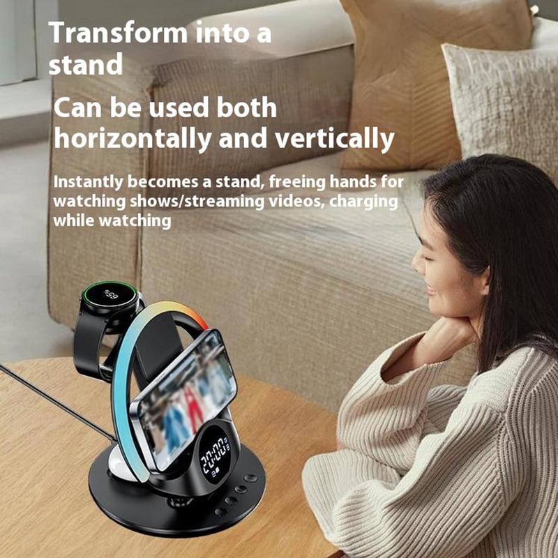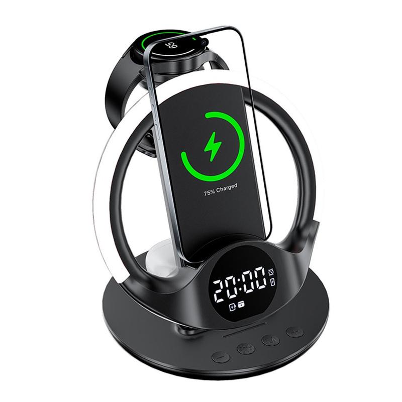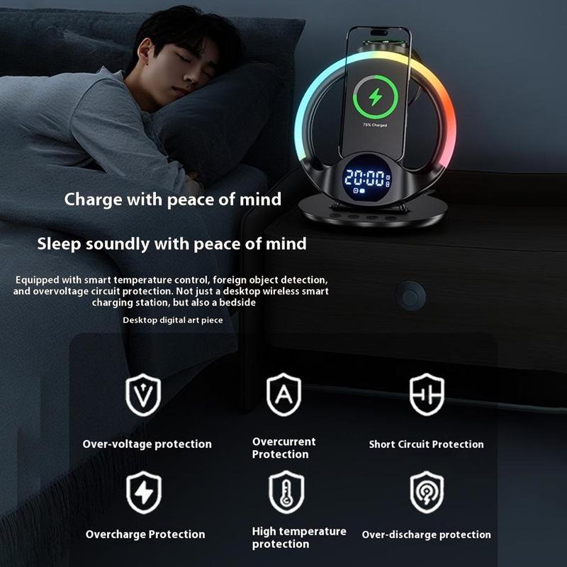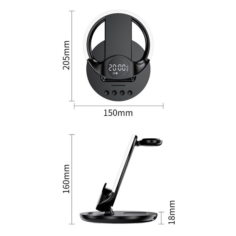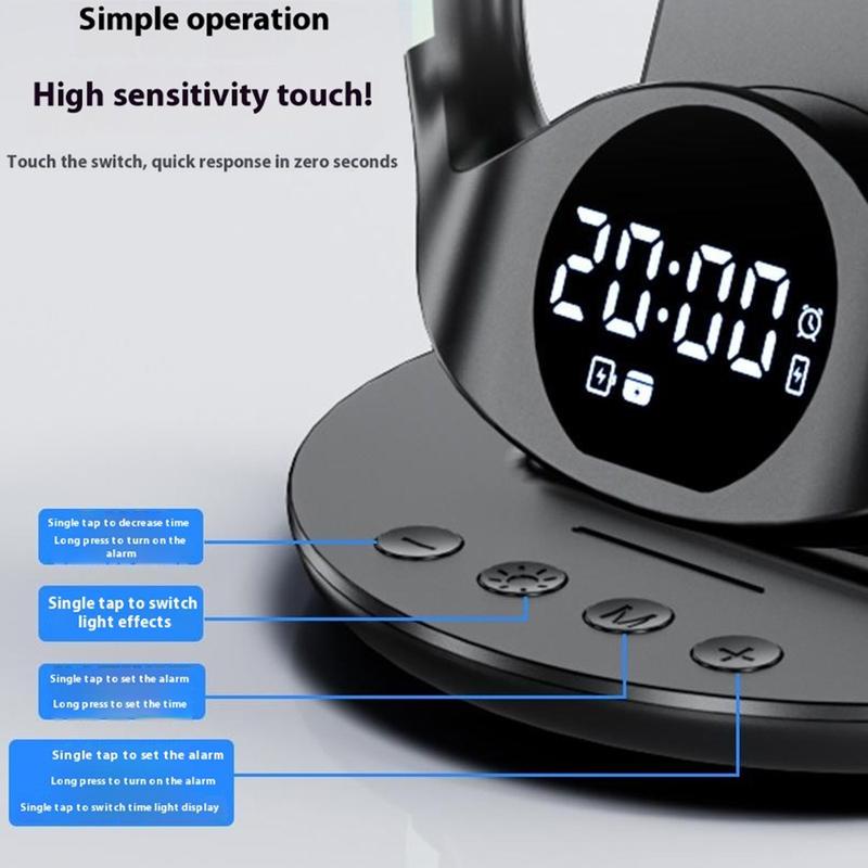 Bezprzewodowa stacja ładująca N01 6 w 1 / magnetyczna podstawka do szybkiego ładowania z budzikiem, inteligentną regulacją temperatury i lampką nocną