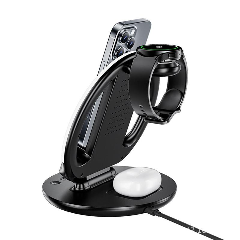 Bezprzewodowa stacja ładująca N01 6 w 1 to najlepsze urządzenie do ładowania smartfonów, smartwatchy i słuchawek dousznych. Zaprojektowana zarówno dla użytkowników Apple, jak i Samsunga, łączy funkcjonalność, styl i bezpieczeństwo w jednej kompaktowej stacji - idealnej na biurko, szafkę nocną lub do biura.