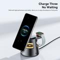 Uporządkuj swoje biurko lub szafkę nocną dzięki magnetycznej podstawce do ładowania bezprzewodowego ESSAGER 4 w 1, zaprojektowanej do jednoczesnego ładowania smartfona, smartwatcha, słuchawek i dodatkowego urządzenia. Kompaktowe rozwiązanie, które zapewnia zasilanie i porządek w jednym miejscu.