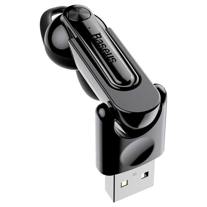 Niewielki zestaw słuchawkowy Bluetooth od Baseus, który dzięki dołączonej stacji ładowania USB możesz ładować poza domem.