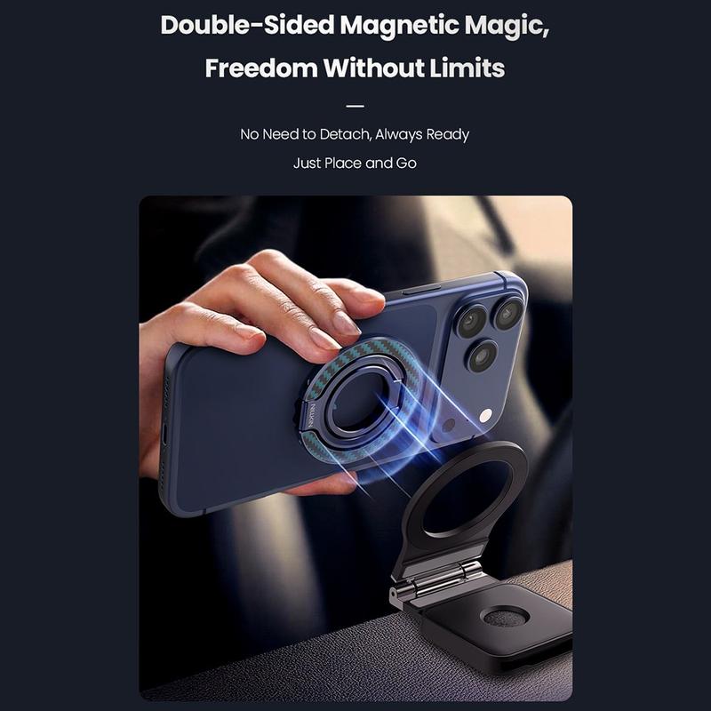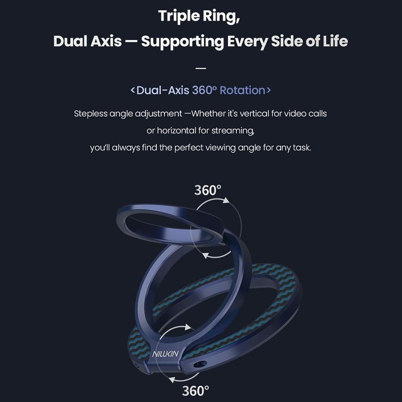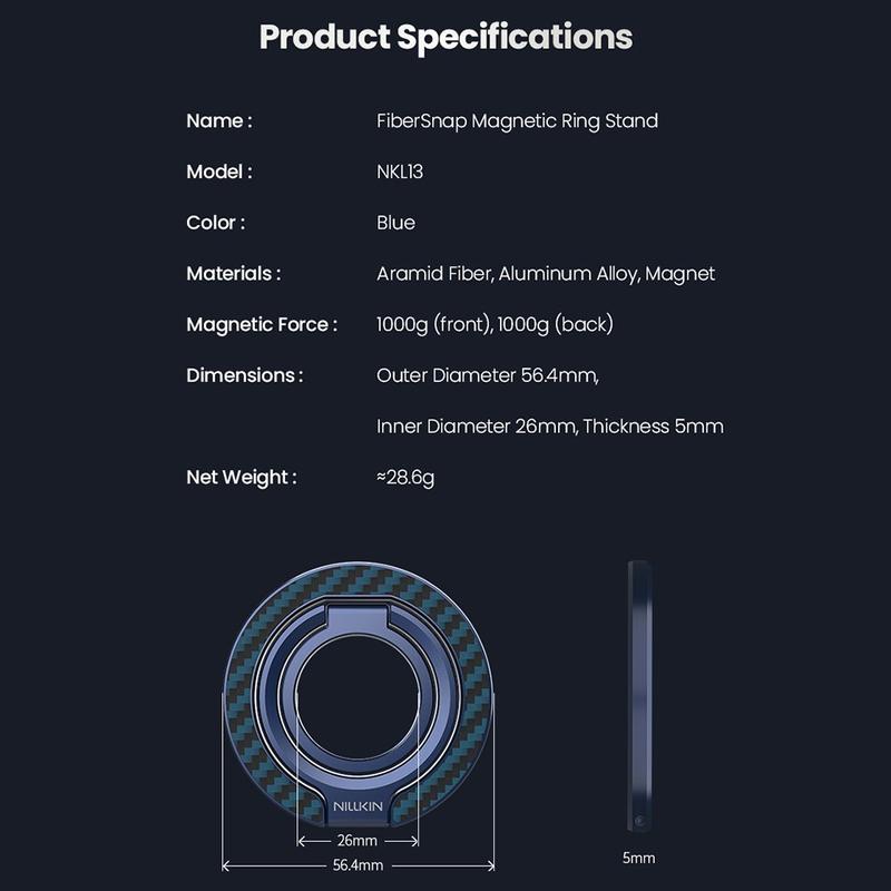 FiberSnap łączy elegancki design z praktyczną elastycznością. Jego dwuosiowy pierścień zapewnia pewny, naturalny chwyt, a bezstopniowa regulacja kąta zapewnia idealną pozycję oglądania za każdym razem. Dzięki dwustronnemu magnetyzmowi i wysokiej jakości materiałom zapewnia wygodę i styl w jednym kompaktowym akcesorium.