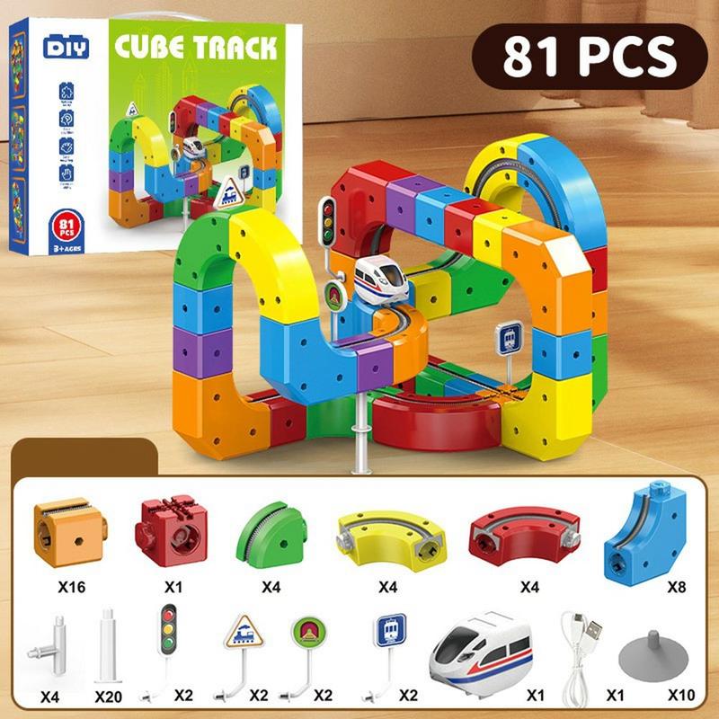 81-elementowy magnetyczny zestaw torów kolejowych - edukacyjna zabawka budowlana STEAM z ładowalnym mini pociągiem