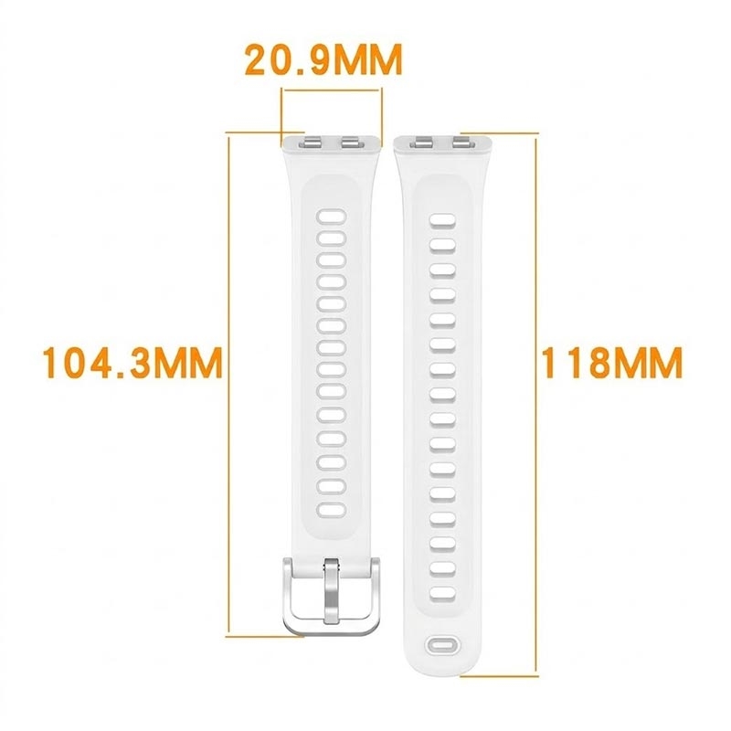 Dzięki temu miękkiemu, silikonowemu paskowi sprawisz, że Twój Huawei Band 11, Band 11 Pro będzie wyglądał jak w dniu zakupu. Możesz dostosować jego rozmiar do obwodu nadgarstka za pomocą kilku dostepnych otworów. Pasek wykonano z przyjaznego środowisku tworzywa silikonowego, które jest odporne na zużycie eksploatacyjne. Elastyczna, oddychająca i lekka konstrukcja zapewnia wygodniejsze noszenie bez powodowania podrażnień na skórze.