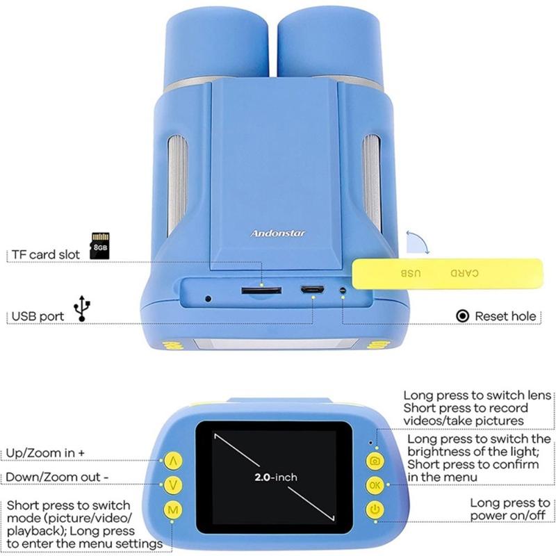 ANDONSTAR AD122 to innowacyjny mikroskop i teleskop dla dzieci 2 w 1 zaprojektowany, aby pobudzać ciekawość i inspirować do eksploracji. System dwóch soczewek pozwala dzieciom badać drobne szczegóły za pomocą soczewki mikroskopu, a jednocześnie oglądać odległe obiekty za pomocą soczewki teleskopu - wszystko to na bezpiecznym, wbudowanym 2-calowym wyświetlaczu HD. Lekki, przenośny i wyposażony w akumulator o pojemności 900 mAh, ten cyfrowy lornetka jest idealny do przygód na świeżym powietrzu, projektów naukowych i codziennych odkryć.