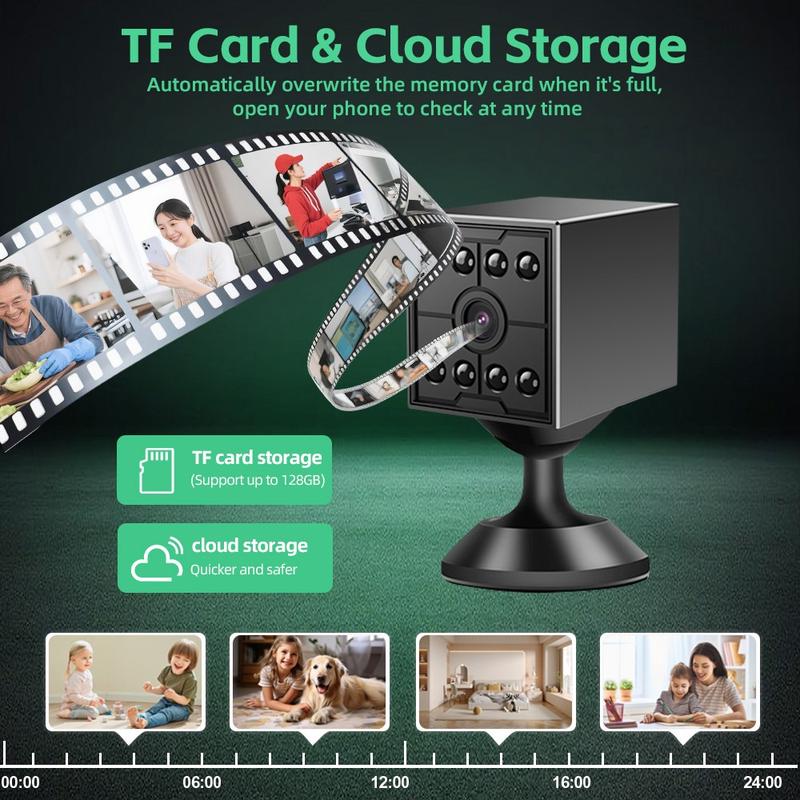 Mini kamery WiFi są popularne, ponieważ łatwiej je umieścić w mniejszych pomieszczeniach niż większe stacjonarne kamery monitoringu. Kąt widzenia wynoszący 130 stopni może również pomóc w zmniejszeniu martwych punktów w niewielkich pomieszczeniach. Kamery obsługujące zarówno karty TF, jak i przechowywanie w chmurze są szczególnie praktyczne, ponieważ użytkownicy mogą wybrać lokalną pamięć, zdalną kopię zapasową lub połączenie obu opcji w zależności od swoich potrzeb.