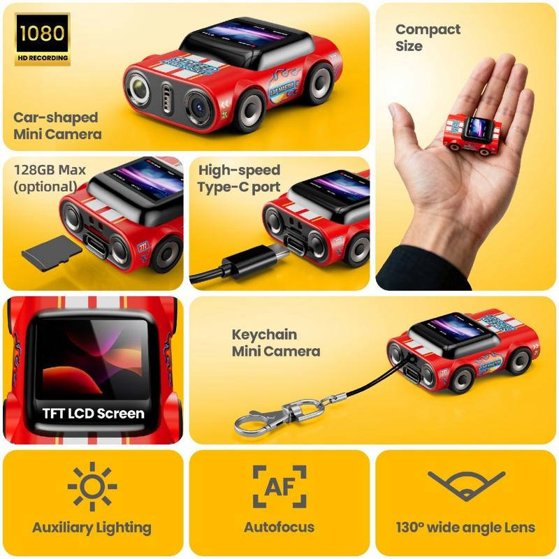 Uchwyć codzienne chwile bez konieczności noszenia pełnowymiarowego aparatu. Miniaturowa kamera G5 AUTO łączy w sobie zabawny wygląd samochodu z prawdziwą rozdzielczością 1080p, dzięki czemu jest zabawnym i praktycznym akcesorium dla studentów, osób dojeżdżających do pracy i wszystkich, którzy chcą szybko uchwycić i nagrać materiał filmowy. Przymocuj ją do kluczy, plecaka lub smyczy za pomocą dołączonego krótkiego łańcuszka — waży zaledwie 0,026 kg, dzięki czemu jest lekka i łatwa do zabrania ze sobą wszędzie.