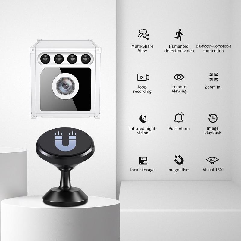 - Kompaktowa kamera bezpieczeństwa WiFi do wnętrz z uchwytem magnetycznym umożliwiającym elastyczne rozmieszczenie